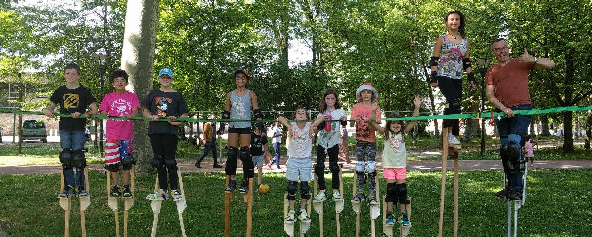 - [Non-adhérents] Premier essai libre avant adhésion. Enfants à partir de 5 ans accompagnés d’un adulte. On fournit les échasses et les protections.