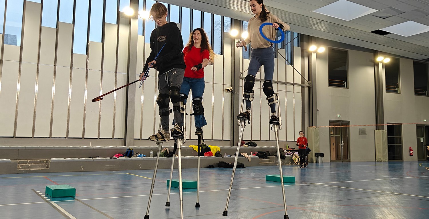Un rendez-vous mensuel d’entraînement aux échasses